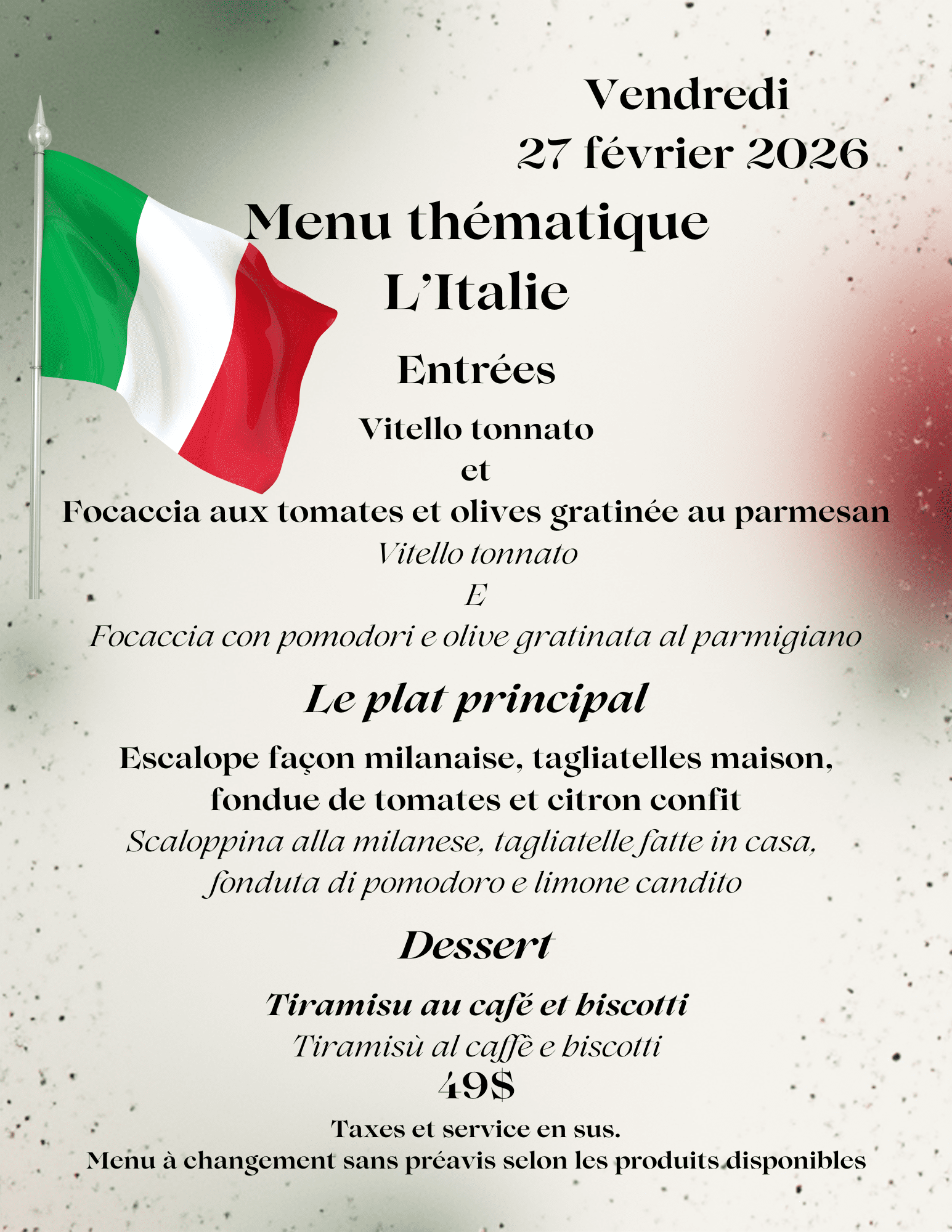 Pour demande de groupe, ouvert 7 soirs selon disponibilité, contactez le 1-888-281-0017 poste 221